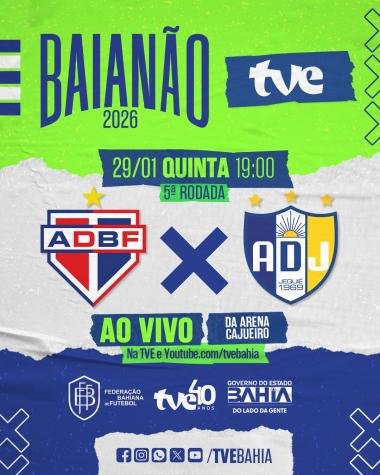 Nesta quinta-feira (29), a partir das 19h, a TVE exibe Bahia de Feira e Jequié, pela quinta rodada do Campeonato Baiano, na Arena Cajueiro, em Feira de Santana. Os torcedores podem acompanhar todos os jogos do Baianão ao vivo pela TVE e também pelo youtube.com/tvebahia.